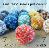 This blog has been specifically written for people looking for unique, creative and unusual craft pom poms. (It may be a little boring unless you're looking for poms, but it is pretty and worth a little, quick look!) The point of all of these wool pom poms is to offer fabulous alternatives to a saturated market. There are many poms a lot cheaper than mine, but if you are looking for a feature pom for a craft project, this is the only place where there are 123 different colours and styles to choose from. Plus of course, I can make them in your own colour palette. For an exact colour match, I have a listing for that too (explained at the end)